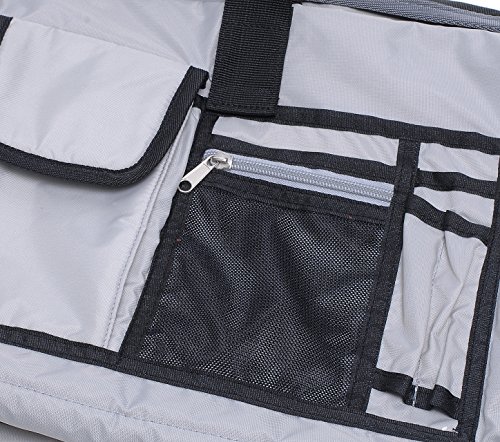 -. Feature : Made of high-quality polyester with nylon lining / Front flap with velcro closure / Three pockets - two interior and one outerior - and multiple compartments store keys, phone, cables and other productive essentials. / Top carry Handle+ adjustable should strap with soft strap band, ease your shoulder! / Approx Dimensions: 16.8*6.6*11.7 inches(L*W*H)