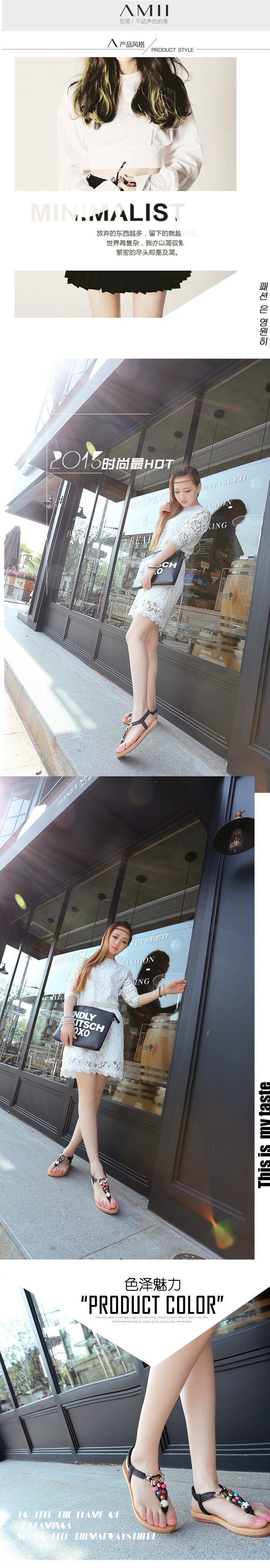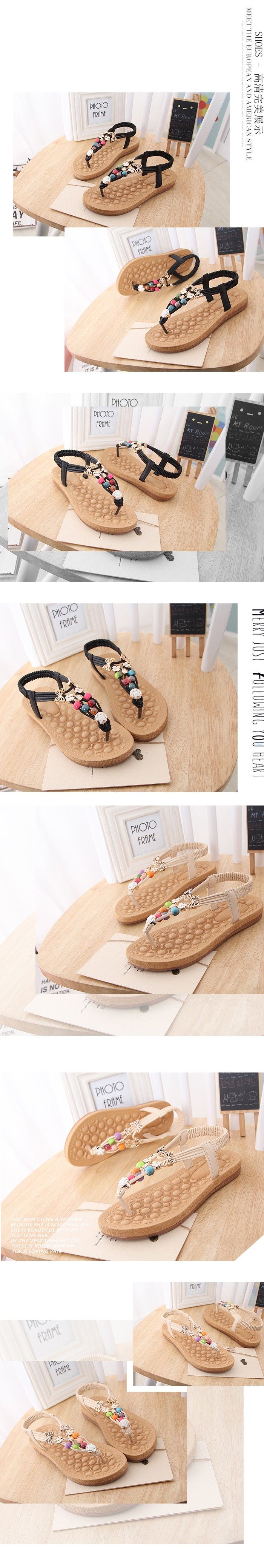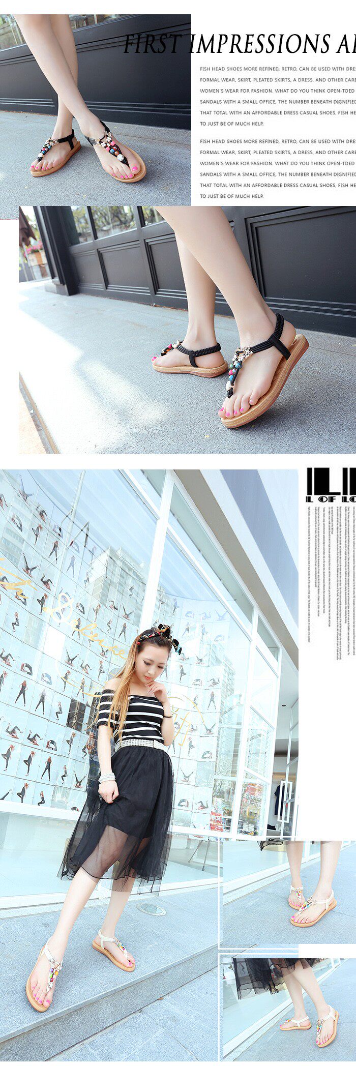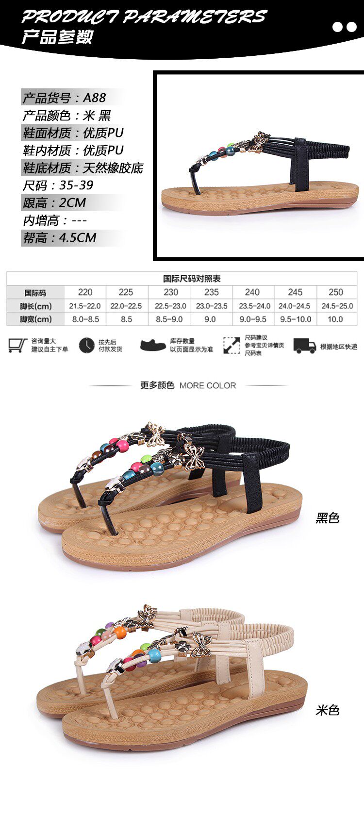 夏季新款凉鞋拖鞋女平底女平跟女夹趾凉鞋串珠学生鞋沙滩鞋