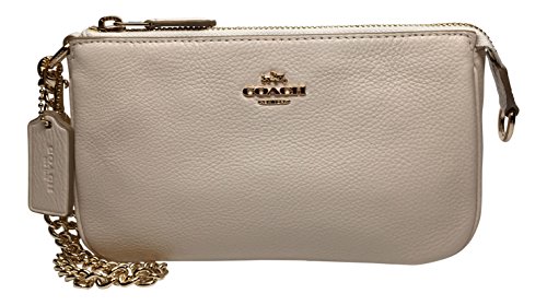 COACH PEBBLED LEATHER LARGE WRISTLET - CLUTCH 53340 COLOR CHALK