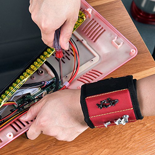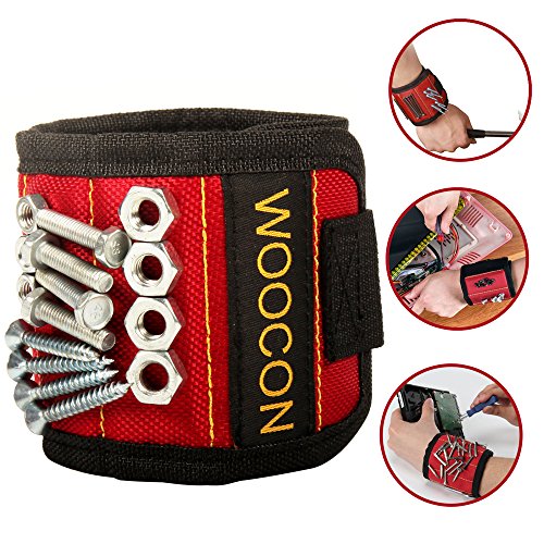 Woocon Magnetic Wristband, SUPER STRONG MAGNET, UPGRADED 5Embedded Super Powerful Magnets, Holds Small Metal Tools, Screws, Nails, Bolts Tightly While Working. Perfect Solution to Reach the Toolbox!