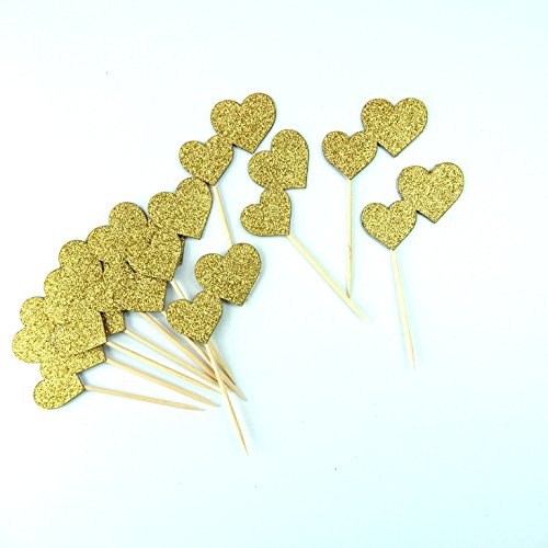 Valentine's Day hearts Cupcake Topper 12 Pack Cupcake Topper Decoration Cake Gold