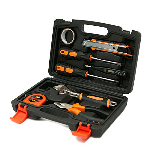 Orange 9-Piece General Tool Set RPNB Household Precision Hand Tool Kit with Plastic Toolbox Storage Case and Adjustable Wrench for Home Maintenance