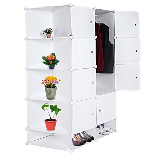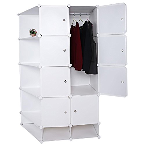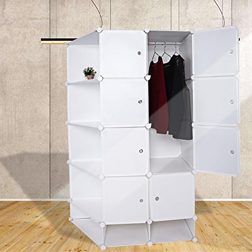 Wardrobe Closets for Bedroom, 2 Column 5 Layer Folding Armoire Storage Wardrobe Armoire with Hanging Rod
