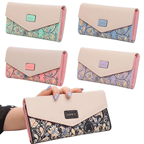 | FUNOC® Womens Envelope Leather Wallet Button Clutch Purse Long Handbag Zip Bag |