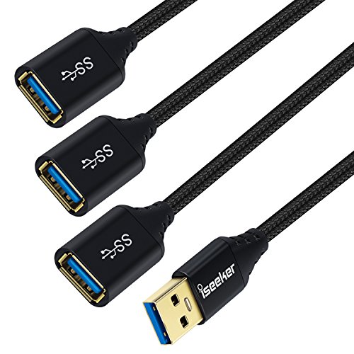 USB Extension Cable, iSeekerKit USB 3.0 A Male to Female Extension Cable USB 3.0 Extender Cord for Playstation, Xbox, Keyboard, Printer, Camare [3-Pack, 6Ft]