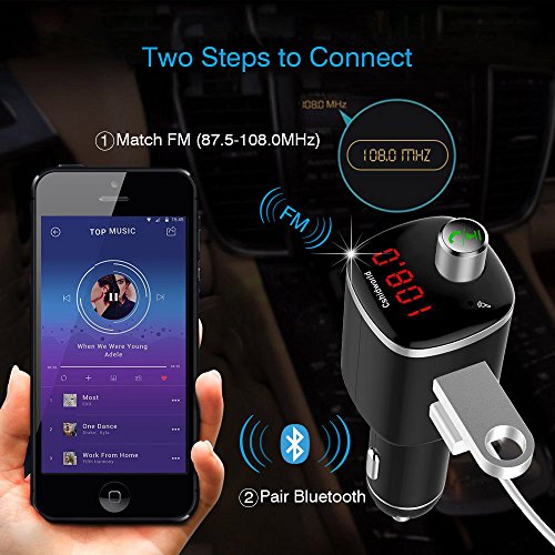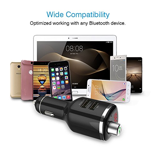 BROAD COMPATIBILITY: this bluetooth fm transmitter can be paired as a hands-free kit with all bluetooth enabled devices, like iPhone, iPad, iPod, Tablet,Samsung, Sony, and other Andriod Smartphones; Stream music and calls directly from your mobile devices to car stereo system via FM radio signal( 87.5-108.0MHz).