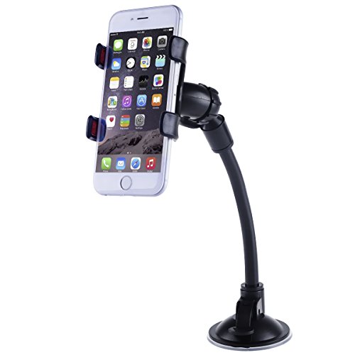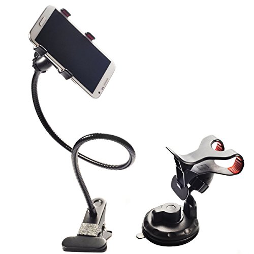 Universal Car Mount Holder Okeyn® Cell Phone Clip Holder Stand with Sitck-on Mount with Gooseneck One Clip Clamp mount Universal Smartphone Car Mount Holder Cradle (OKCM-022 Black)