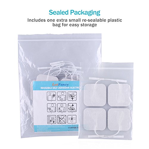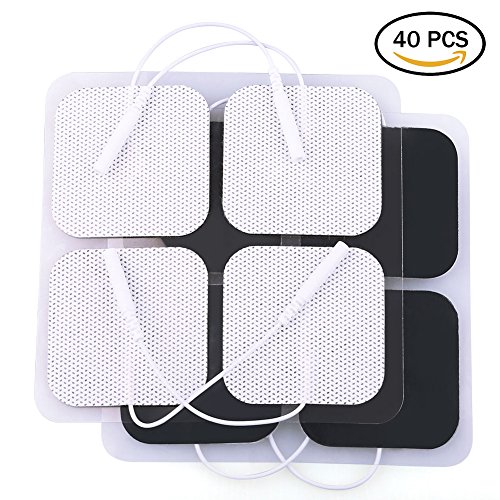 LotFancy 40PCS TENS Unit Electrode Pads Replacement for TENS EMS Massage, 2 Inch Square White Cloth Backing with Premium Adhesive Gel
