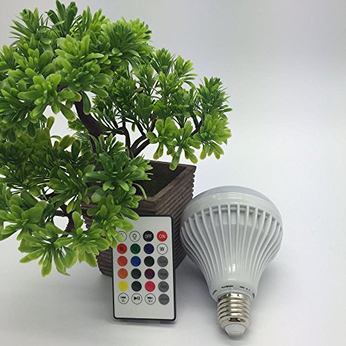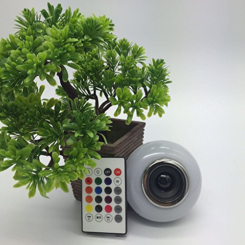 Features: 100% Brand New and High Quality. Multi colors, Bluetooth control, Music functions. With remote control, can be manually adjust the light color. Optional also choose RGB mode, the light randomly beating. Energy saving, environmental protection, low power, low heat generating. Easy to install and operate. Specification: The two section switch: Switching between the white and colored light Item type: led music bulb Color of body: White Light color: RGBW Material: Plastic Voltage: AC100-240V/50Hz-60Hz Total power: 12W Output power: 6W Speaker power: 3W Frequency response: 135Hz-15KHz Base: E27 Bluetooth version: 3.0 and Bluetooth Smart Support configuration: A2DP Luminous: 400 Lm Temperature: 5700-6300K Life span: 50000 hours Radio range: 10m/33ft Weight: 250g Dimensions: 5.19 in x 3.7 in x 3.7 in (13.2cm x 9.4cm x 9.4cm) Remote Controller power supplied by: 1 * button cell battery Application: Suitable for the bedroom, closet, cabinet, corridor, workshop, basement, garage, stairwell, oil depots, roof, door and other places. Package Include: 1 X 6W Bluetooth speaker LED bulb 1 X English user manual 1 X Remote controller (Battery is included)
