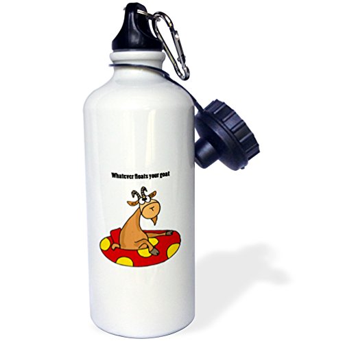 3dRose wb_200085_1 Funny Goat in Innertube Says Whatever Floats Your Goat Sports Water Bottle, 21 oz, White