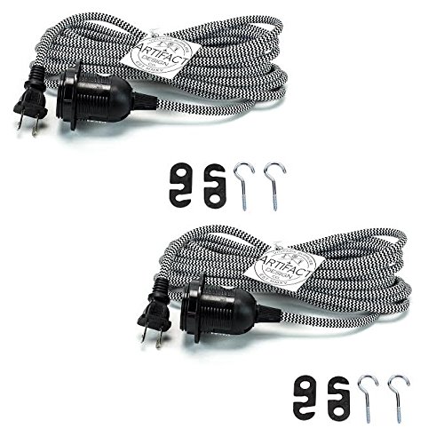 Set of 2 ArtifactDesign Fabric Cord Set 15 Feet Hanging Pendant Light Fixtures , Uses Standard Size E-26 Light Bulb , Great for Industrial Vintage Retro DIY Projects (Black&White)