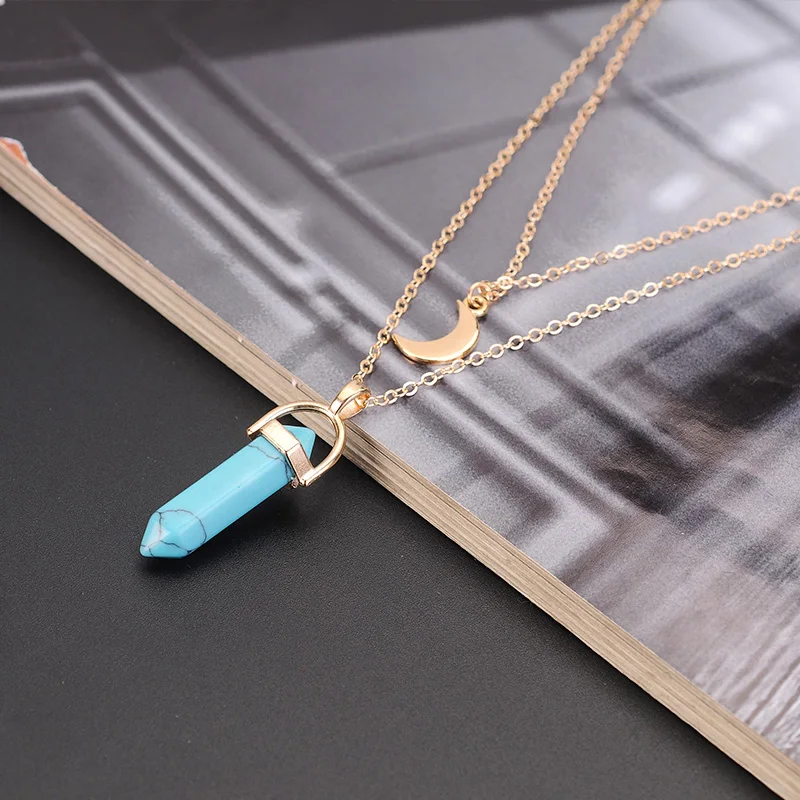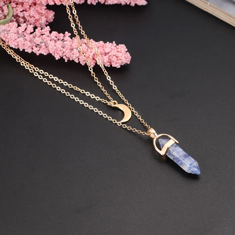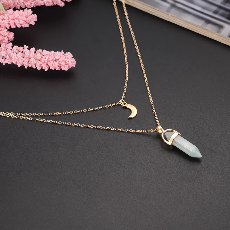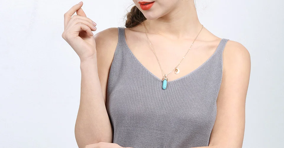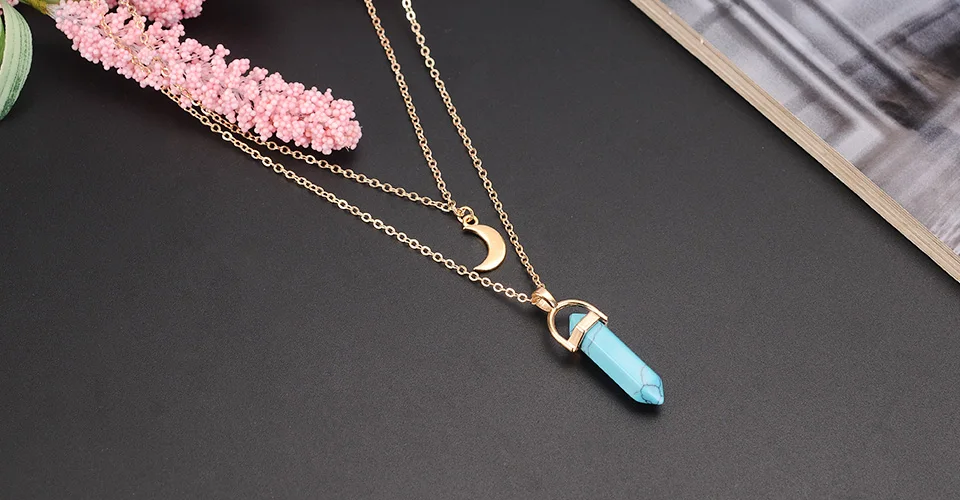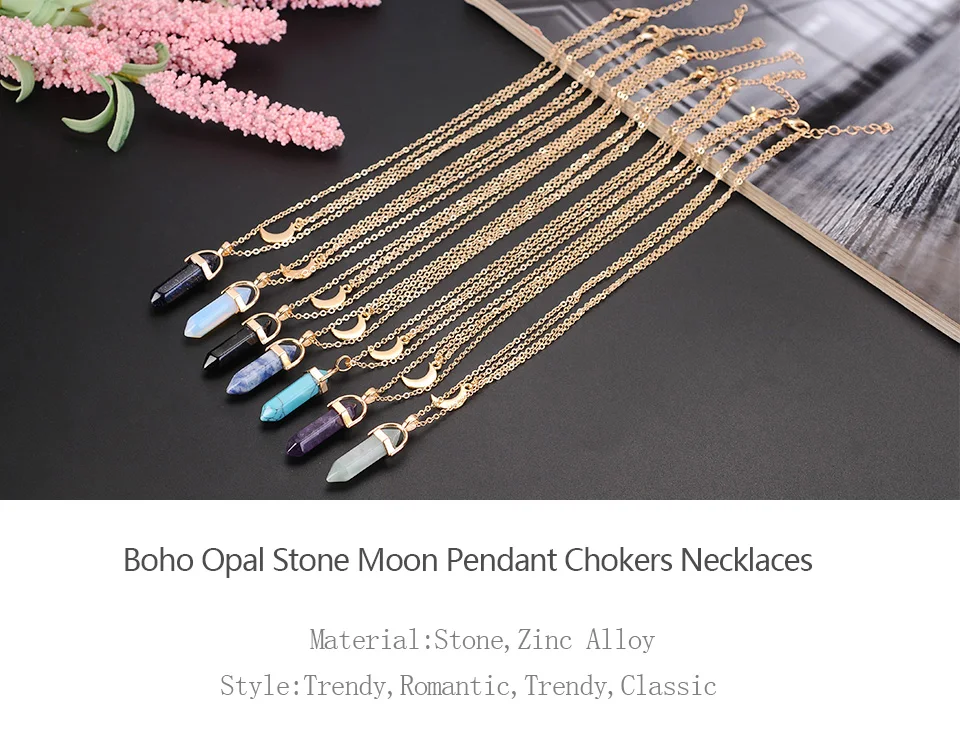 Design:Boho Jewelry Moon Pendant Necklace Necklace women Stone necklace
