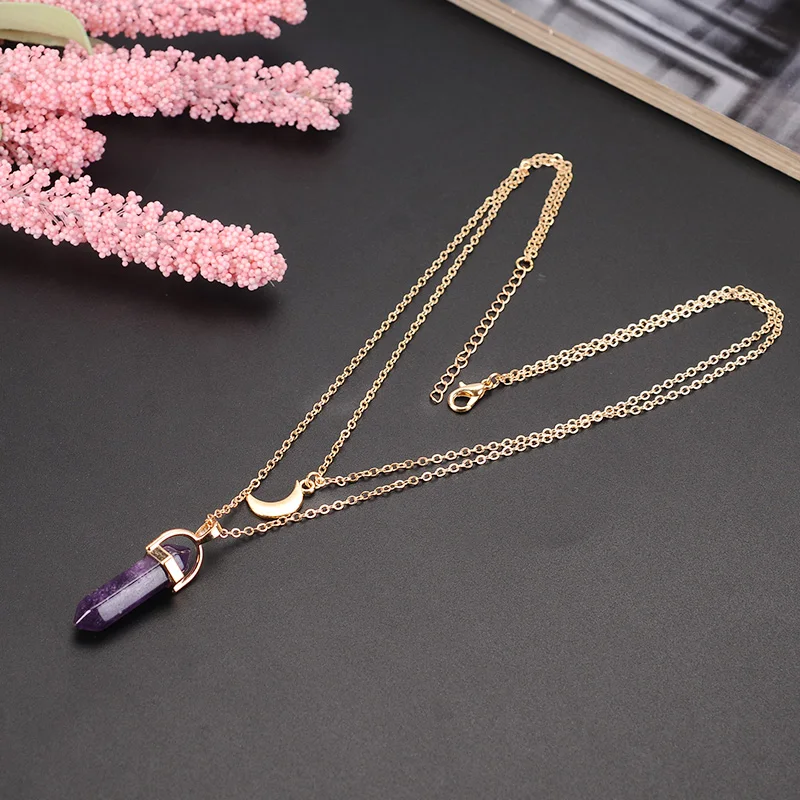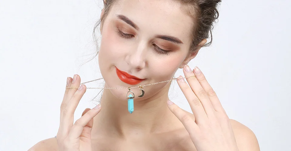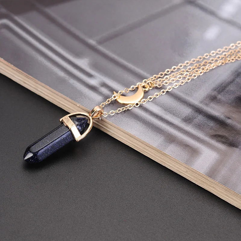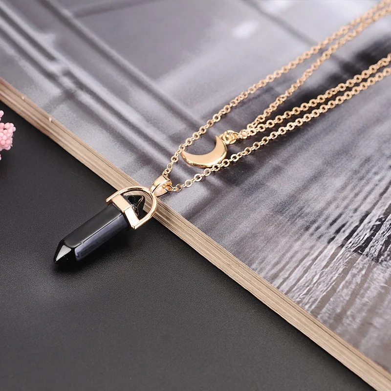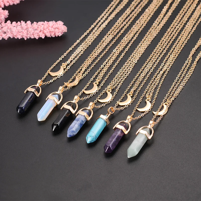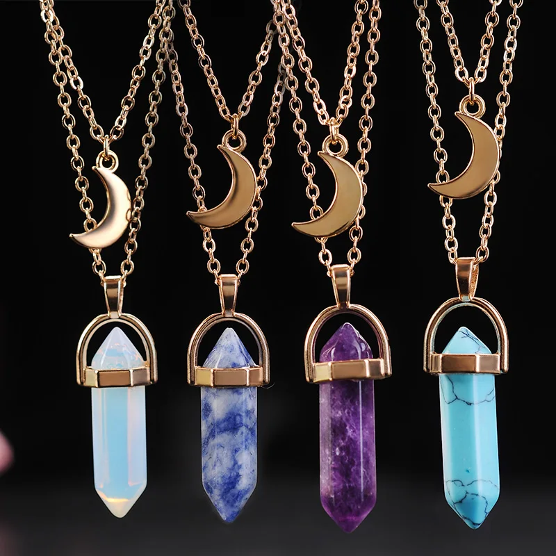 Design:Boho Jewelry Moon Pendant Necklace Necklace women Stone necklace