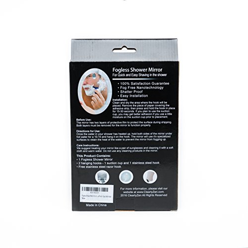 Clearly Zen Fogless Shower Mirror - Shave In The Shower And Actually See Your Face - Remains Fogless For A Perfect Shave Every Time - Free Razor Hook -...