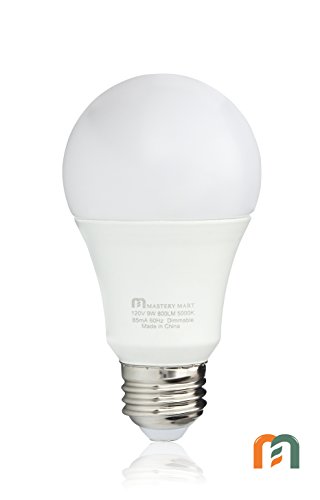Led Light Bulbs 9 Watt [60 Watt Equivalent], A19 - E26 Dimmable, 5000K Daylight, 800 Lumens, Medium Screw Base, UL Listed by Mastery Mart (Pack of 6)