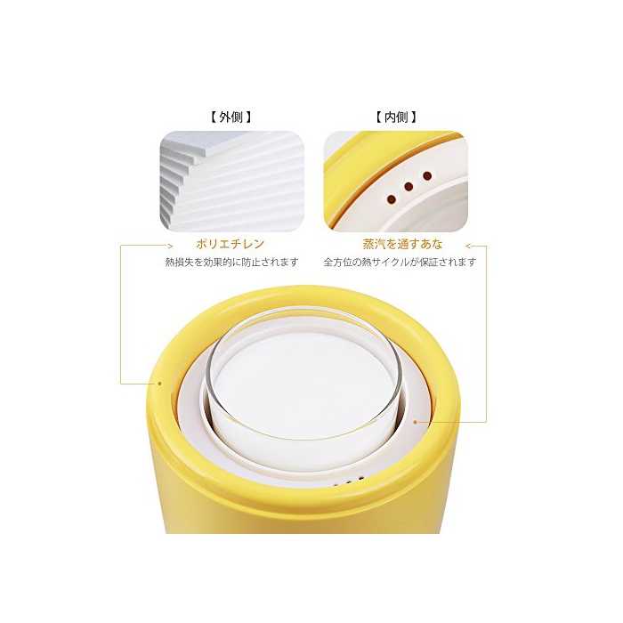 「2 층단열 보온」:안쪽의 단열층 에 있는증기를 통하는 아는 전방위의 열싸이클을 보증시킵니다,메인 바디는 폴리에틸렌 보온재를 채용하고, 열손해를 효과적으로 방지됩니다.유산균에 완벽한 발효 환경을 줍니다!