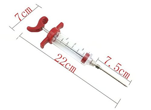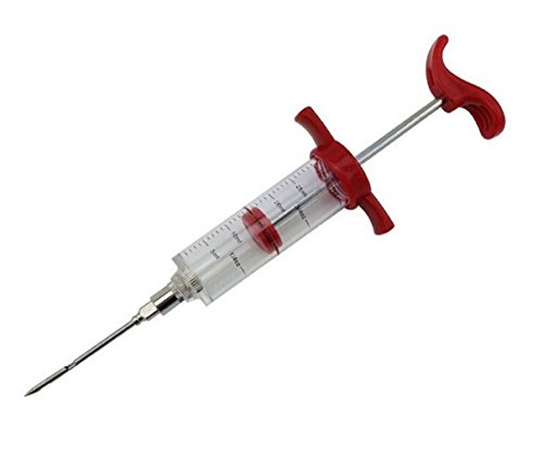 Studio : BESTERY Publisher : BESTERY Product Description As many barbecue pros know, injecting is the most efficient way to add flavor and moisture to smoked, barbecued, or grilled food. Think of injecting as marinating from the inside out. Beacuse rubs, spice pastes, and glazes sit on the meat's surface. Marinades penetrate only a few millimeters into the meat. Brining and curing solutions do reach the center, but require several days or weeks to do so (a process that takes up major real estate in your refrigerator). Injecting gets the flavor to the center of the food in seconds with the push of a plunger. To use our injector, fully depress the plunger and insert the needle in the injector sauce. Make sure the perforations are fully submerged in the sauce. Pull the plunger back to fill the syringe with liquid. Plunge the needle deep in the meat, then depress the plunger slowly and steadily. Best for include large cuts of meat, like whole hogs, hams, and pork shoulders, whole turkeys and chickens, briskets, etc., plus intrinsically dry meats like pork loin, lamb leg, beef round roast, and double thick pork chops. 0
