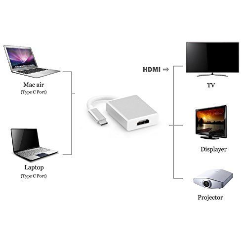 USB Type C to HDMI Adapter, by I4 USB 3.1 Type C Reversible(USB-C) to HDMI Adapter for New MacBook 12 inch 2015, MacBook Pro (Late 2016), Nokia N1, Asus Zen AiO - Silver