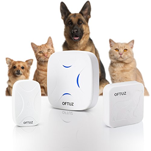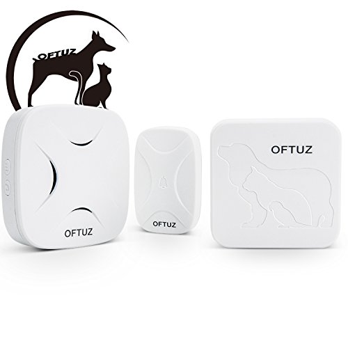 OFTUZ Wireless Doorbell for Pets,Waterproof Door Bells with 1 Plug-in Receiver 2 Remote Push Buttons(for Human and Dog),Ring by Paws/Nose,52 Chimes 4 Levels Volume for Home Potty Bell House Training