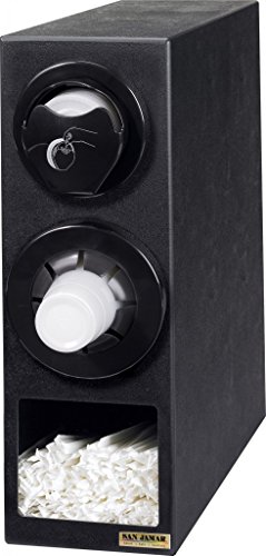 San Jamar L22CS2951BK Sentry Dimension Polystyrene Beverage and Lid Dispenser Cabinet with Straw Compartment and Black Trim Rings, 7-3/4" Width x 22-3/8" Height x 25-3/8" Depth, Black