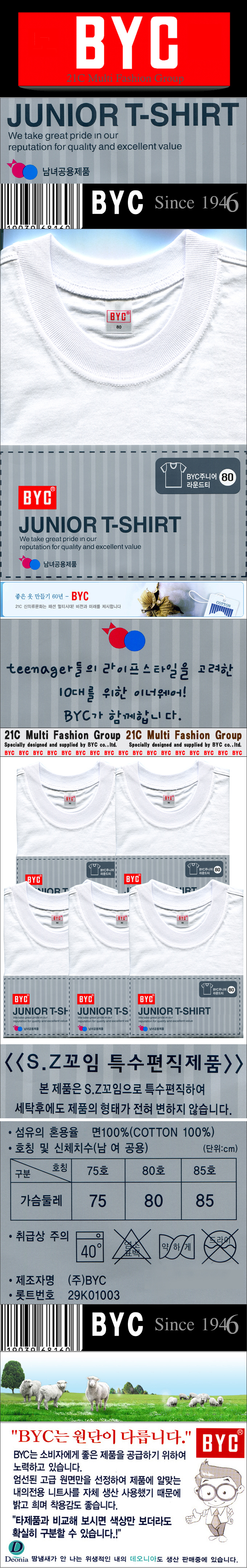BYC 한국제 정품 반팔라운드 런닝형 티셔츠로 가장 무난하게 착용 가능하신 상품 입니다
