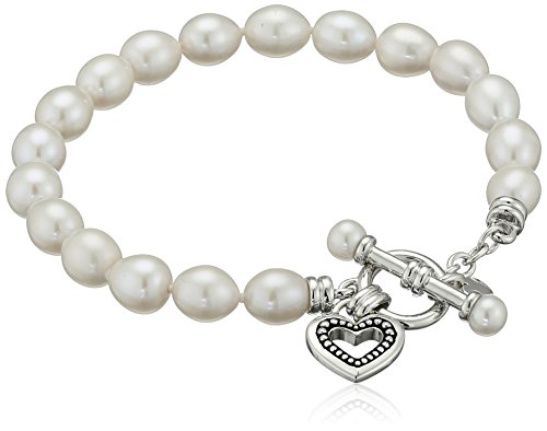 -. Title : Sterling Silver White 7-7.5mm White Oval Freshwater Cultured Pearl Heart Toggle Charm Bracelet