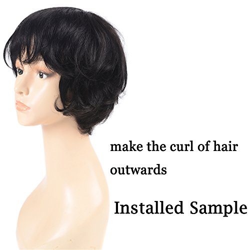 27 peices Short Human Hair Weave with Top Closure Wavy Virgin Hair Extension With Free Wig Cap and Shower Cap Natural Color #1B Natural Black