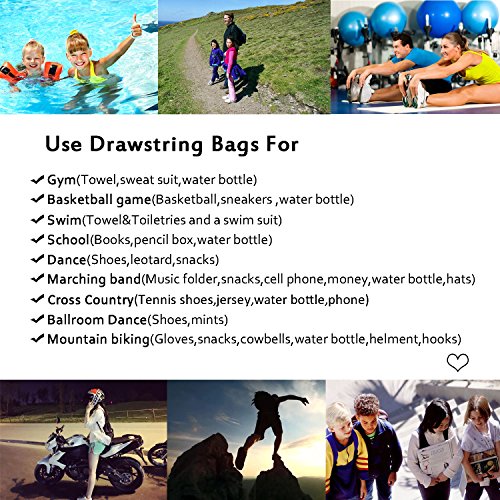 IDEAL STORAGE - Best drawstring backpacks for play basketball, gym, college, work or traveling. You can use it for storage of your sports shoes like soccer, football, baseball, softball and basketball, or place your workout clothes like shirts, pants or any other athletic clothes. You can even put your gadgets, paperwork, school books and other stuff. It is made of light weight and durable material so you can easily carry it on your back or bring by hand.