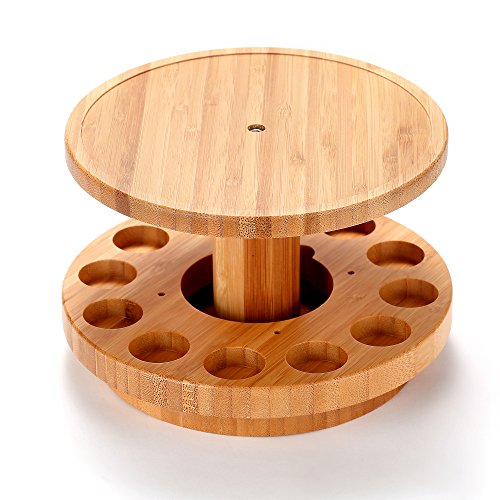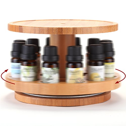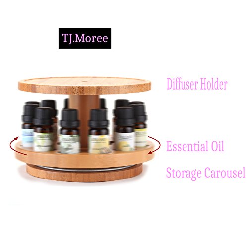 TJ.MOREE Bamboo Essential Oil Storage Holder Carousel 2 Tier with Upper Tray for 5ml, 10ml Roller Bottles