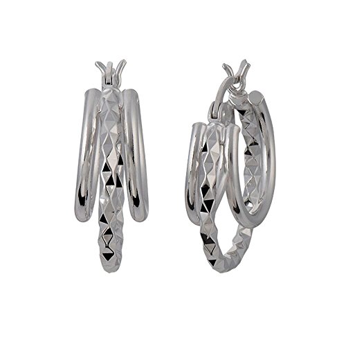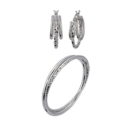-. Title : G&H Sterling Silver Multi Hoop Earrings and Stacking Bangle Bracelet with Diamond Cut Set
