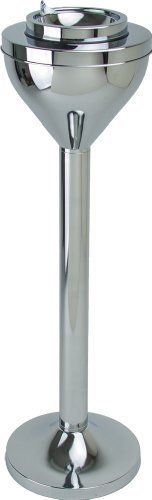 This standing ashtray features a sleek silver chrome design to match any decor