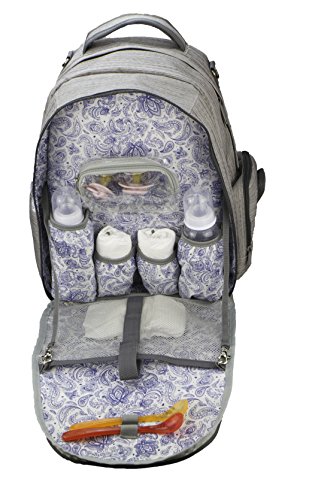 Knuddelstuff ‘Buckingham’ Baby Diaper Bag Backpack & Organizer System – Insulated Pockets, Grey