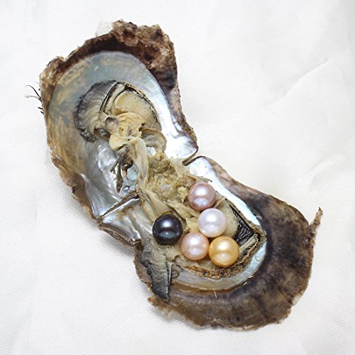5PC Akoya Cultured Love Wish Pearl Oysters with Pearls Inside Five Colors (9-10mm)