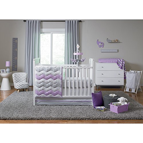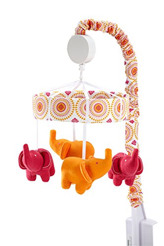 Happy Chic Baby by Jonathan Adler - Emma Musical Mobile - This musical mobile will help soothe your little one to sleep, gently spinning while playing Brahms Lullaby. Elegant, knit elephants spin serenely from this purple pattered mobile with grey arm cover. Coordinates with a full line of Happy Chic Baby Emma nursery bedding and decor.Feature