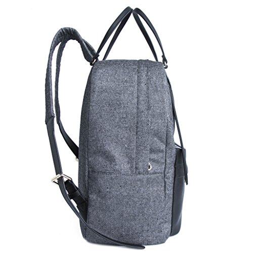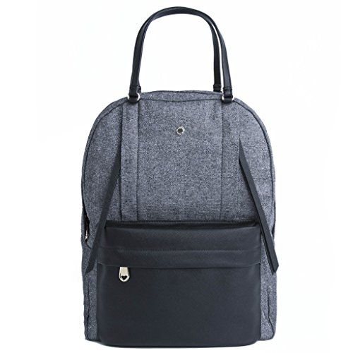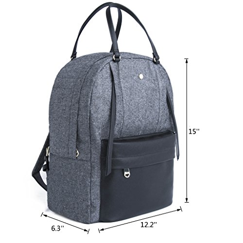 -. Feature : Metallic woven backpack featuring vertical zippered pockets, cutout zipper pulls, and contrast vegan leather accents / Dimensions: 12.2'' (L) x 15''(H) x 6.3''(D) / Interior and exterior zippered pocket, adjustable straps