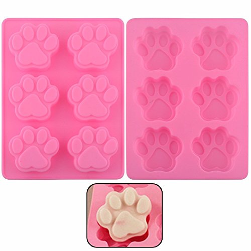 2 Pack-6 Cavity Dog Paw Non-Stick Food Grade Silicone Cake Pan Baking Mold
