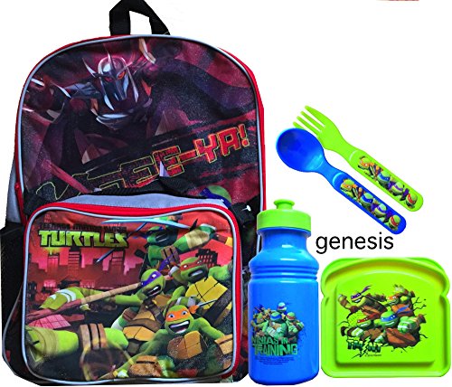 -. Title : Teenage Mutant Ninja Turtles Children’s Backpack With Lunch Bag Attachment, With 4 Pc Lunch Gift Kit
