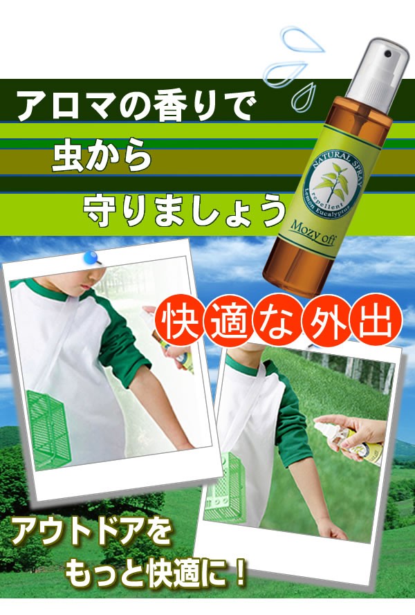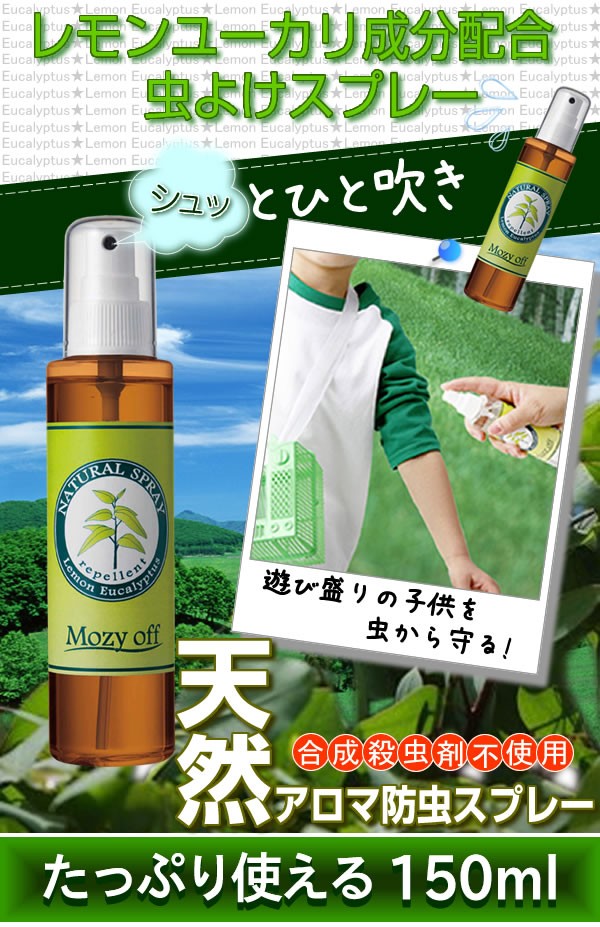 植物由来の天然成分配合!しかも優れた防虫効果のあるレモンユーカリを使用。肌に安心で、レモンユーカリ特有のさわやかな香りで心が落ち着きます。シュッとひと吹き、手軽に使えます。 ※サプライヤー直送品 ご注文後、当日~1営業日後の出荷となります【商品名】天然アロマ防虫スプレー Mozy off(モズィーオフ)