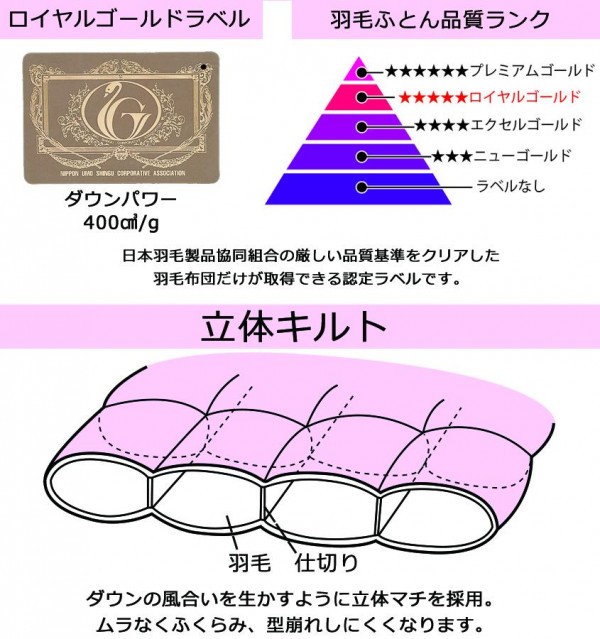 | 高品質のロイヤルゴールドラベル羽毛掛けふとん。 |