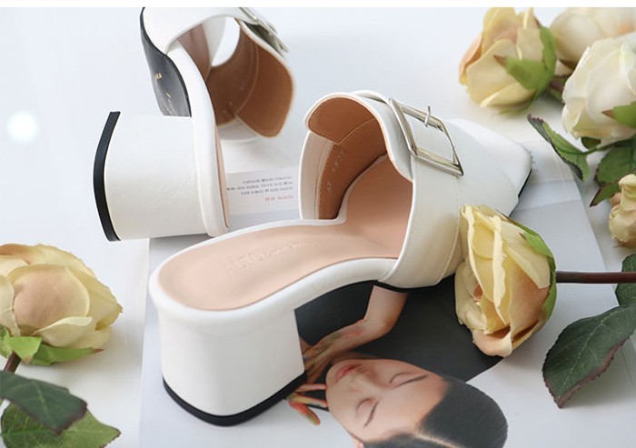 商品名:サンダル レディース ミュール 太ヒール チャンキーヒール 2018 春 ファッション 靴 婦人靴