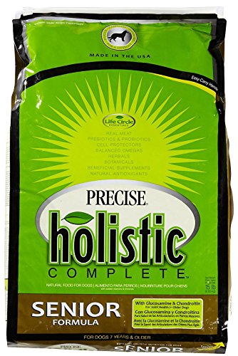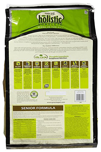-. Binding : Misc. -. Brand : Precise -. Department : dog-dry-food -. EAN : 0072693395503 -. Feature : Precise Feline Senior Formula is a healthy, natural diet made from all the right ingredients to keep your cat full of bounce and vitality past the age of nine / Its protein comes from real Chicken meat meal; It is chemical-free / Precise Feline Senior Formula its reduced calorie formulation helps prevent obesity -. Label : Phillips Feed & Pet Supply -. Manufacturer : Phillips Feed & Pet Supply -. Model : PRE39550 -. MPN : PRE39550 -. NumberOfItems : 1 -. PackageQuantity : 1 -. PartNumber : PRE39550 -. ProductGroup : Pet Products -. ProductTypeName : PET_SUPPLIES -. Publisher : Phillips Feed & Pet Supply -. ReleaseDate : 2013-07-23 -. Size : 15 lb. Bag -. Studio : Phillips Feed & Pet Supply -. Title : Precise 726337 Holistic Complete Senior Dog Food, 15-Pound -. UPC : 072693395503