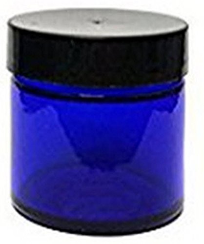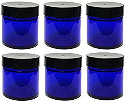 2 Ounce Glass Jars with Ribbed Foam Lined Lids includes Gift Card & Envelope (6 Pack, Cobalt Blue)