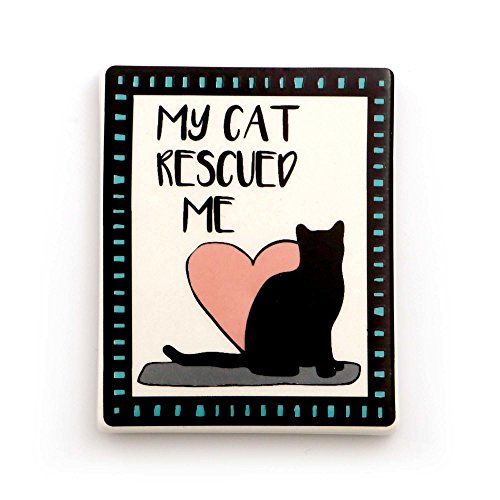 Enesco 4057150 Cat Rescued Me Stoneware Magnet, 3", Multicolor