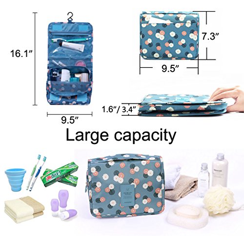 LARGE CAPACITY: Size about 9.45“x 7.48”x 3.15“ is large enough for your travel demand, such as your jewelry, toiletry, hair accessories and other travel accessories. Also carry with a hook, you can hanging the travel cosmetic bag to save space.