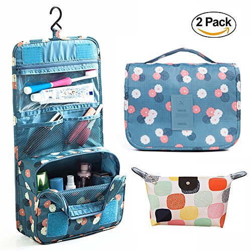 Travel Portable Organizer Cosmetic Bag, KEBE Waterproof Multifunction Bathroom Storage Carry Case Toiletry Bag Portable Makeup Pouch Travel Hanging Organizer Bag + Portable Makeup Bag ( 2-Pack )