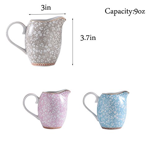 Product DescriptionCHOOLD Countryside Flower Ceramic Creamer Pitcher for Coffee Milk Tea 9oz (Pink/Blue/Gray)0
