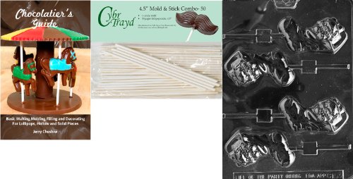 Cybrtrayd 'Pup in Stocking Lolly' Christmas Chocolate Candy Mold with 50 4.5-Inch Lollipop Sticks and Chocolatier's Guide