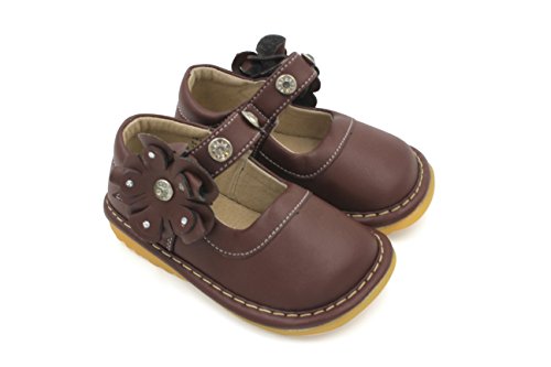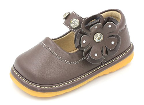 -. Title : Toddler Shoes | Squeaky Black, Brown Crystal Flower Mary Jane Toddler Girl Shoes | Premium Quality (Removable Squeakers)