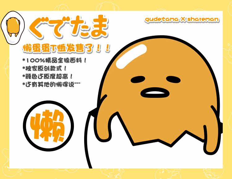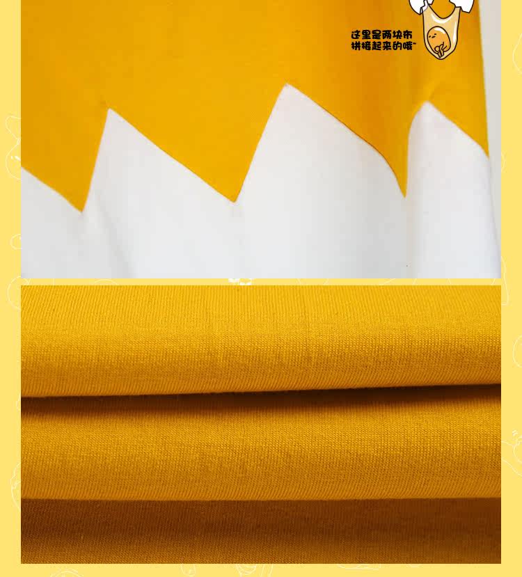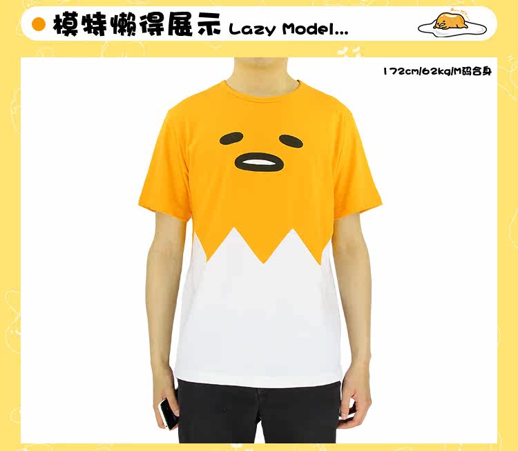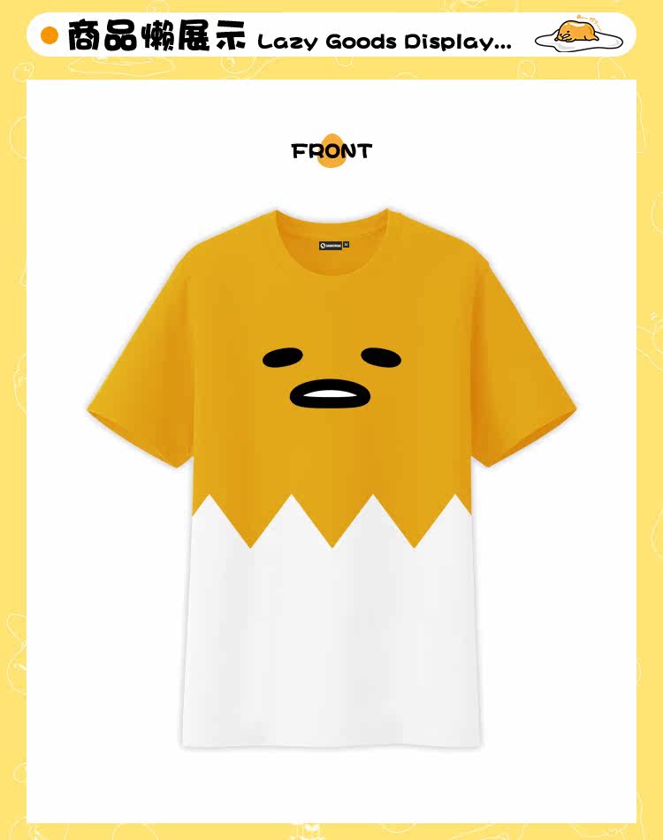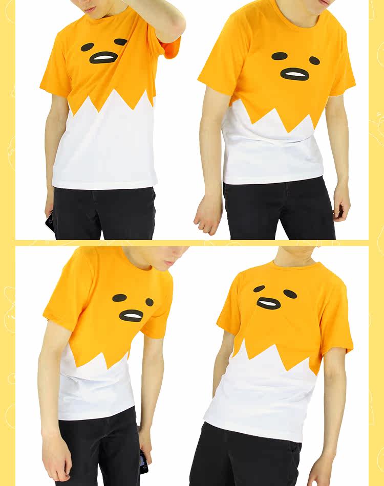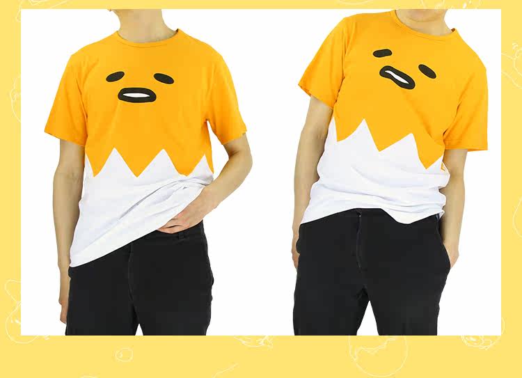 日本gudetama懒蛋蛋 蛋黄哥蛋黄君夏季纯棉拼接动漫T恤