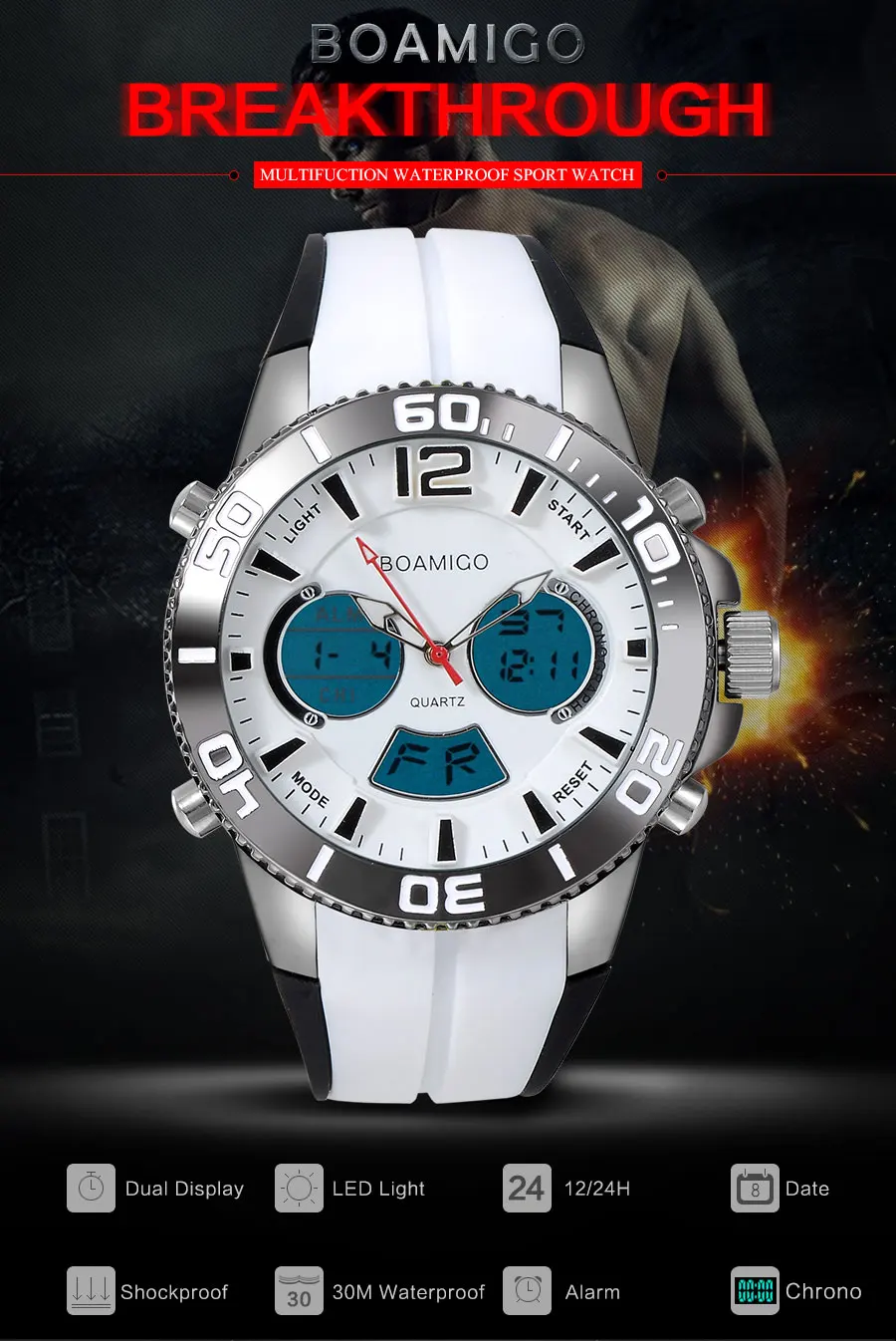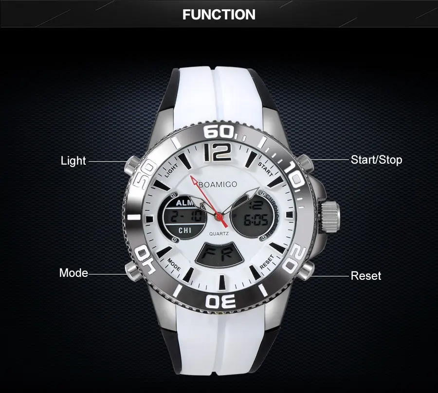 Feature:Stop Watch,Shock Resistant,LED display,Auto Date,Chronograph,Complete Calendar,Multiple Time Zone,Perpetual Calendar,Water Resistant